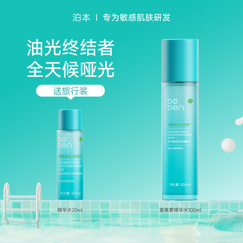 泊本姜黃素控油舒緩精華水100ml溫和修護無酸祛痘爽膚水女敏感肌