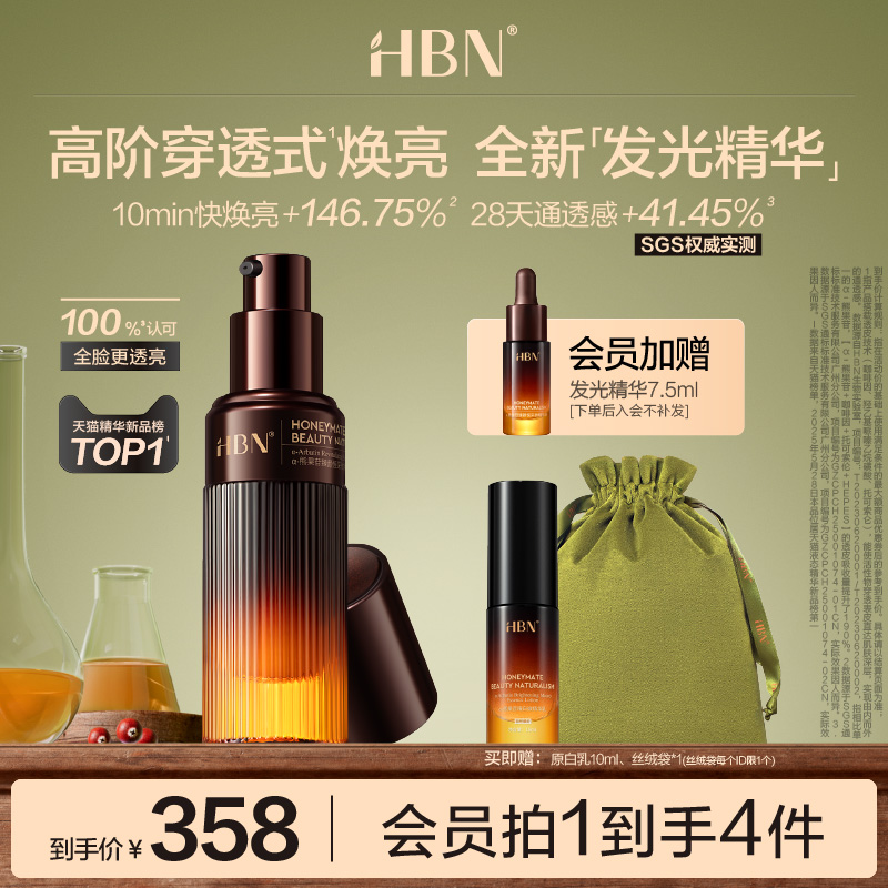 【重磅上新】HBN發光精華α-熊果苷液態精華液抗氧減黃提亮底妝CP