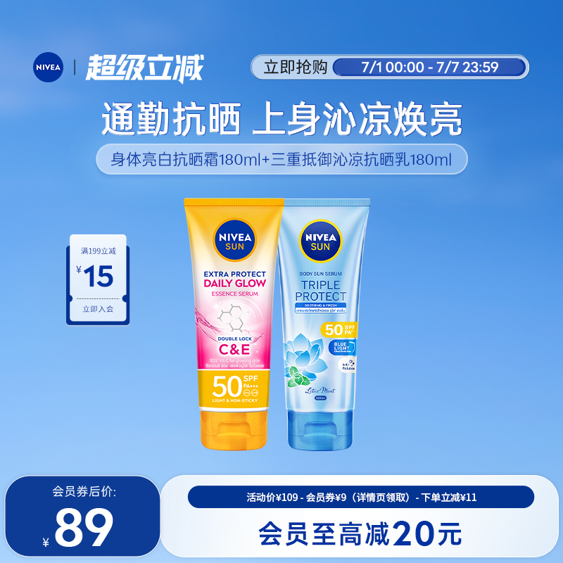 妮維雅三重沁涼防曬SPF50泰國煥白身體防曬180ml雙支