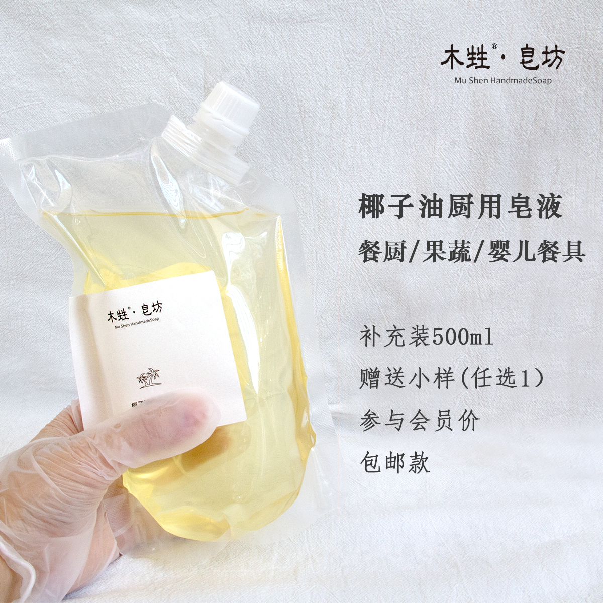 木甡廚用手工皂液椰子油制作果蔬餐具奶瓶清洗植物洗潔精500ml袋
