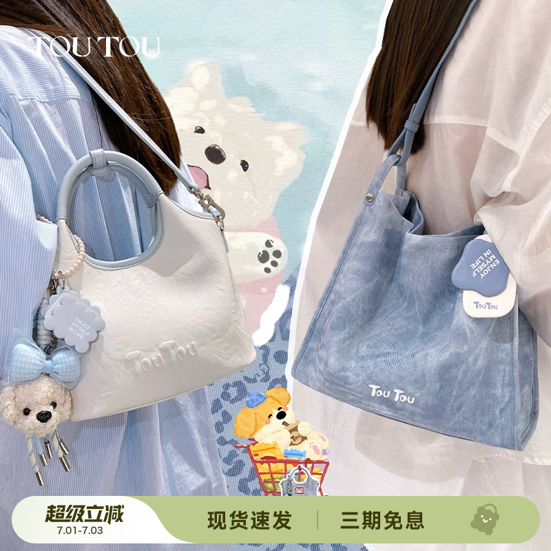 TOUTOU新款小狗保齡球包手提波士頓包大容量通勤百搭腋下托特包女
