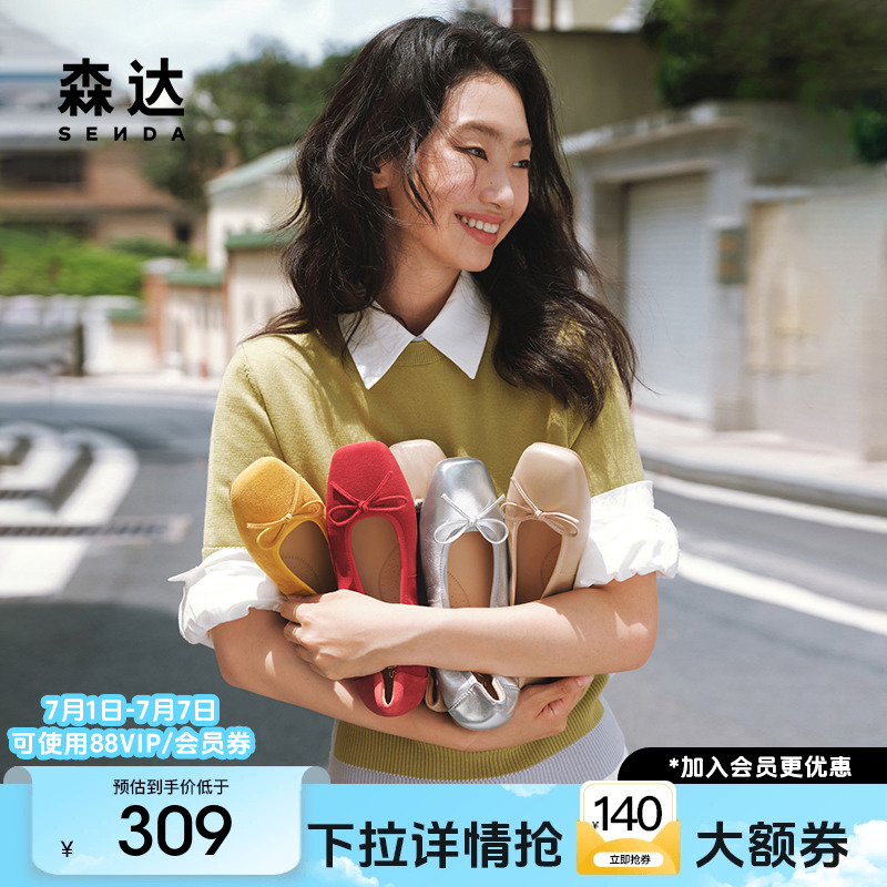 森達羊皮蛋卷鞋女秋商場同款超軟舒適平底淺口芭蕾豆豆瑪麗珍單鞋
