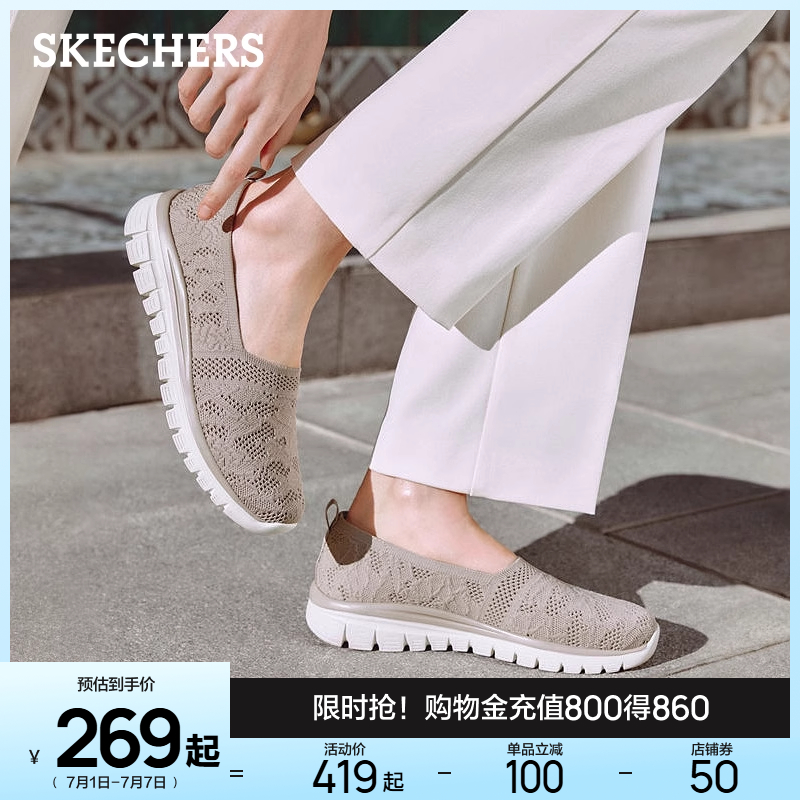 Skechers斯凱奇女鞋夏淺口單鞋一腳蹬休閑鞋網面透氣媽媽鞋健步鞋