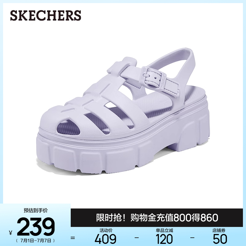 斯凱奇包頭涼鞋2025新款夏季女厚底增高羅馬豬籠鞋時尚休閑鞋