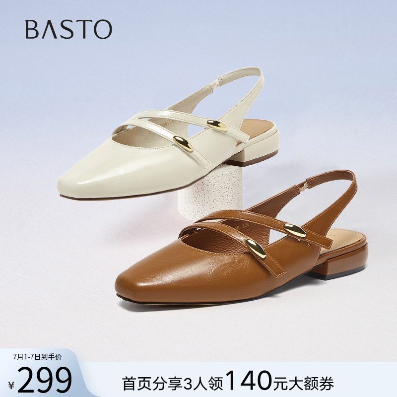 百思圖2025夏季商場新款氣質粗跟后空女羊皮瑪麗珍涼鞋C1629BH5