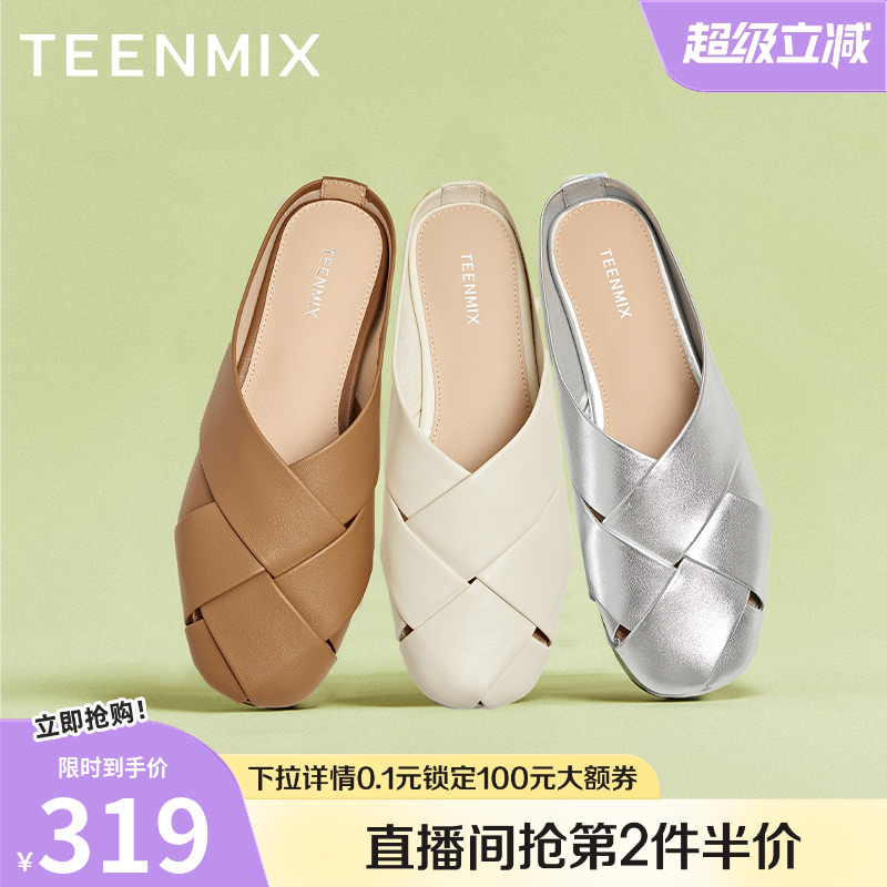 天美意平底羅馬包頭半拖鞋女外穿涼拖穆勒鞋2025夏季新款KT087BH5