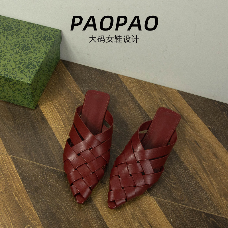 大碼女鞋41到43寬腳胖包頭拖鞋鏤空編織低跟2025夏季一腳蹬穆勒鞋
