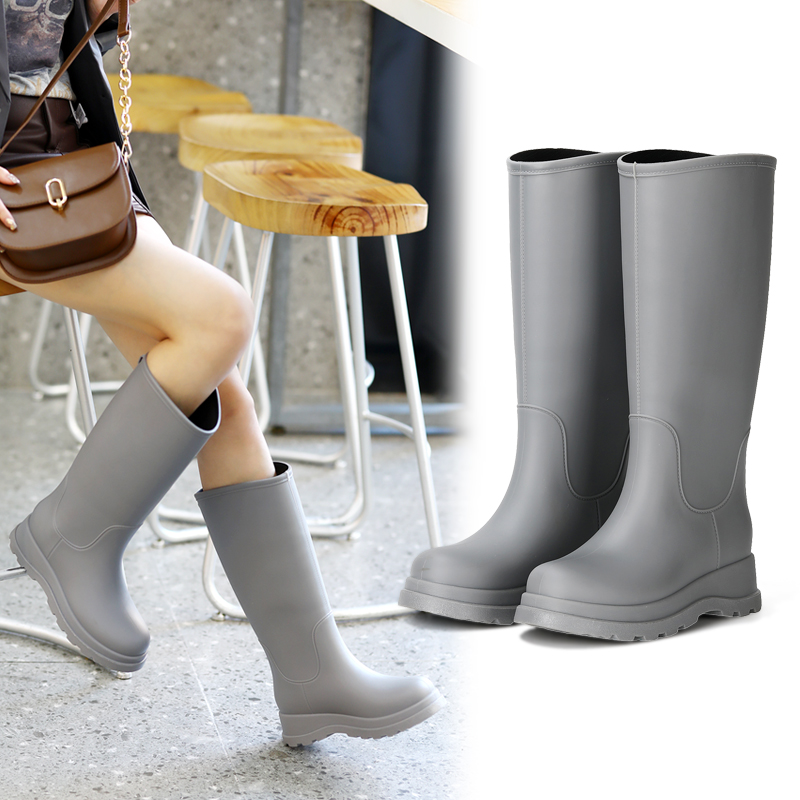 時尚雨靴無里布水鞋舒適柔軟高筒四季防水防滑女士無網紗中筒雨鞋