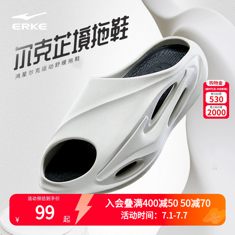 鴻星爾克芷境拖鞋男春款外穿運動籃球拖鞋沙灘鞋男鞋防滑涼拖潮拖