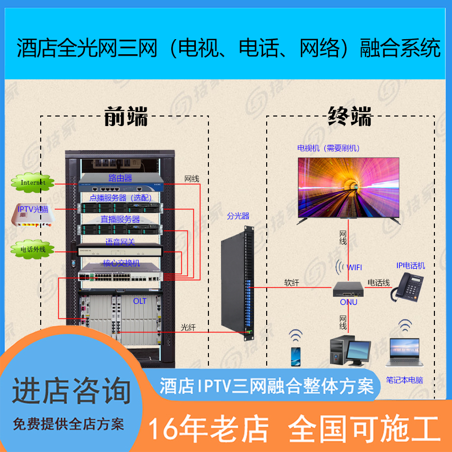 智慧酒店iptv電視系統三網融合光網流媒體網關服務器數字前端改造