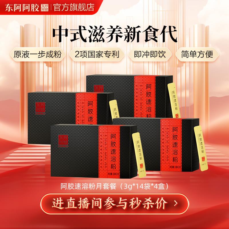 官方旗艦店阿膠速溶粉3g*14袋*4盒月套餐