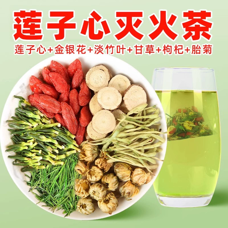 蓮子心金銀花蒲公英菊花茶熬夜養肝清心去火熱甘草梔子組合泡水喝