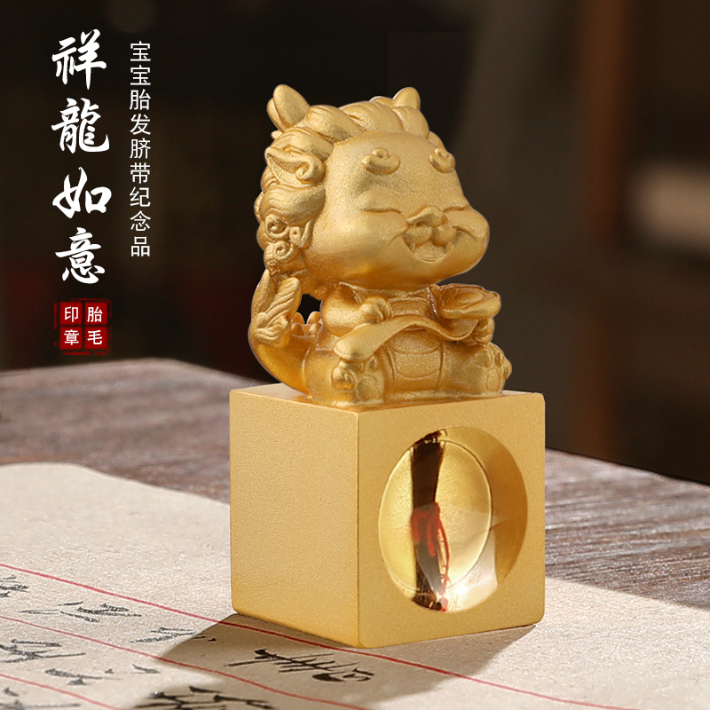 胎發紀念品胎毛印章臍帶章diy制作琉璃玉璽P生肖龍寶寶嬰兒百天禮