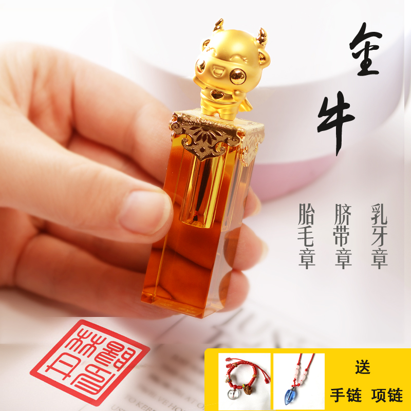 新生牛胎毛印章DIY嬰兒胎毛紀念品24K鍍L金牛印章臍帶章寶寶紀念