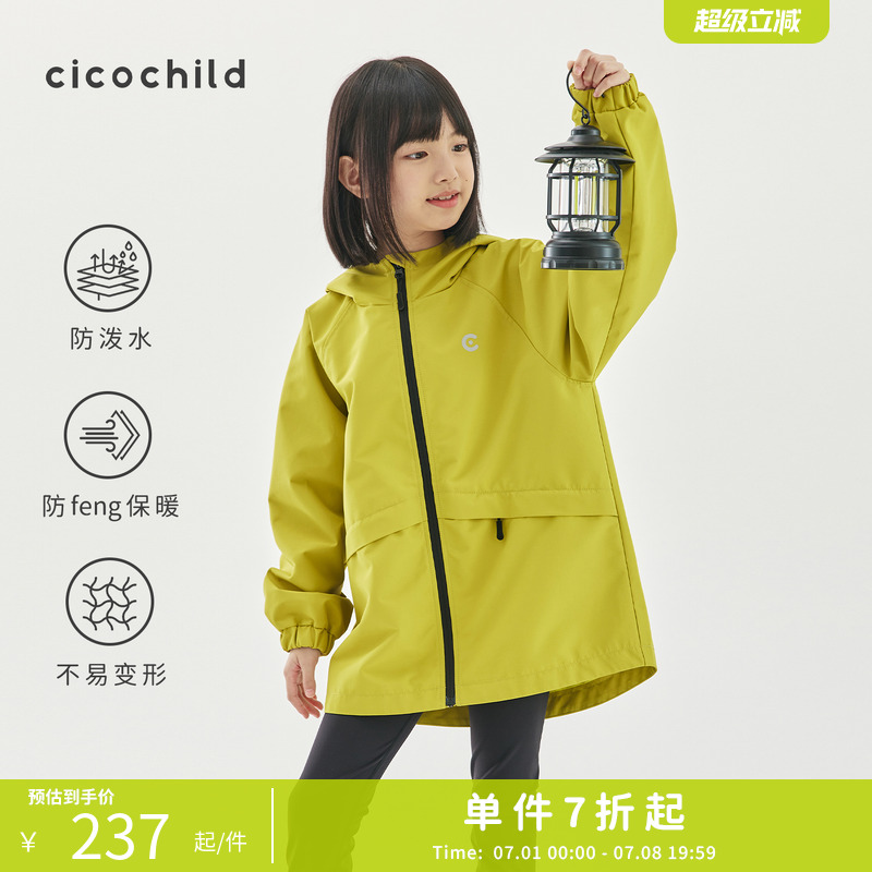 cicochild 2025年秋款插肩連帽風衣親子款兒童戶外防潑水外套