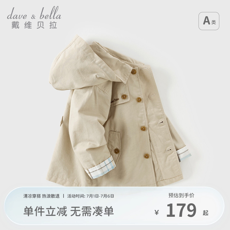 戴維貝拉男童休閑外套秋裝兒童連帽風衣寶寶洋氣童裝防風上衣外出
