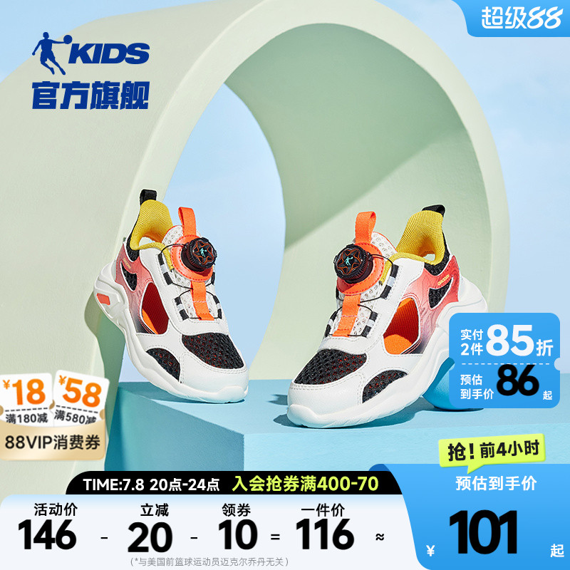 喬丹兒童運動鞋鞋子小童2025夏季新款網面透氣紐扣童鞋男童跑步鞋