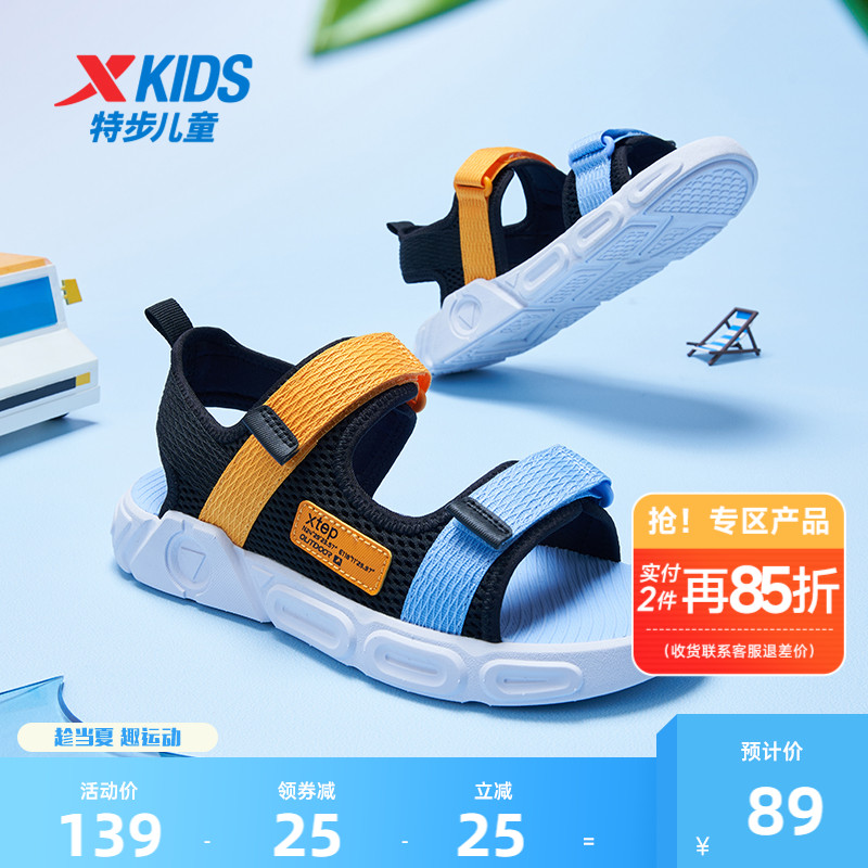 特步童鞋2025夏款男童透氣防滑兒童涼鞋夏季男孩鞋子沙灘鞋運動鞋