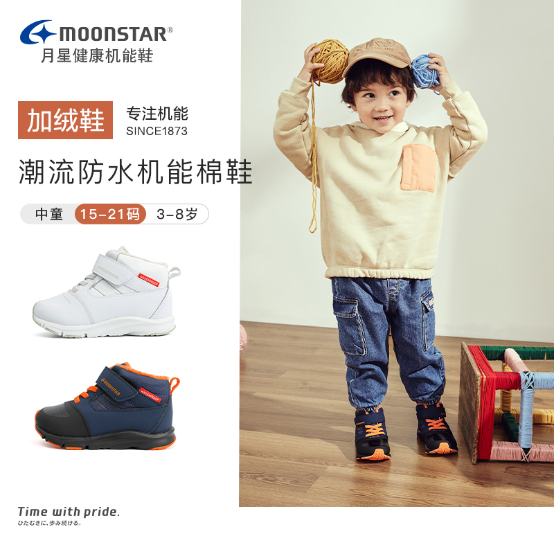 月星童鞋冬季寶寶兒童高幫小白鞋加絨幼兒園黑色機能鞋運動棉鞋男