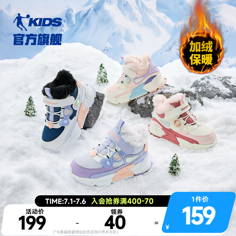 中國喬丹童鞋女童棉鞋2023新款冬鞋加絨防滑兒童二棉鞋小童運動鞋