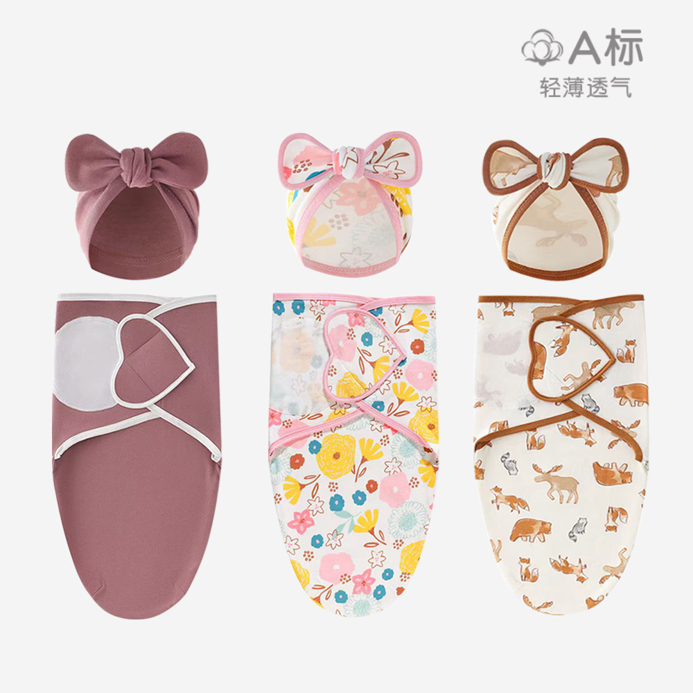 幻曦小益撕春夏薄款竹棉防驚跳包裹巾寶寶襁褓巾新生兒四季襁褓被