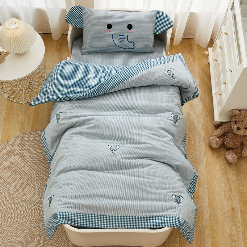 匹魯兒童全棉四件套純棉重工刺繡幼兒園學生午睡三件套四季通用