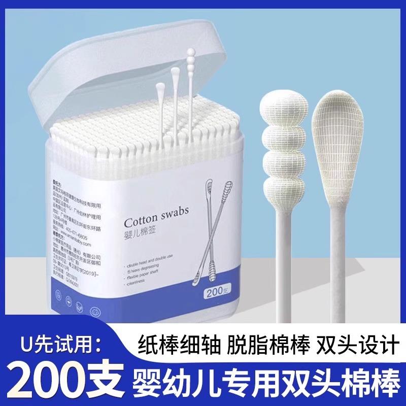 婧麒嬰兒棉簽新生兒專用寶寶棉棒掏耳朵鼻屎雙頭兒童挖耳勺棉簽棒
