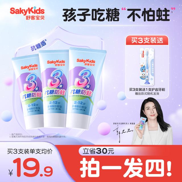 抗糖舒客寶貝臻護抗糖防蛀兒童牙膏清潔含氟果味溫和H