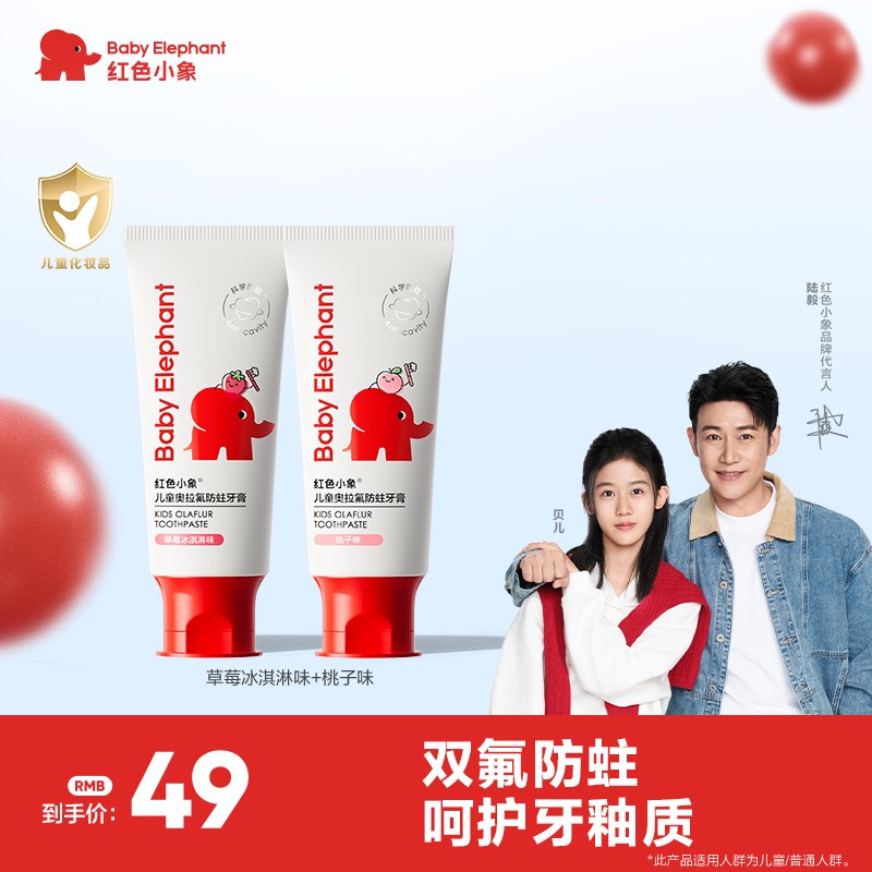 紅色小象兒童嬰幼兒含氟防蛀果味牙膏溫和清新防蛀健齒學生牙釉質
