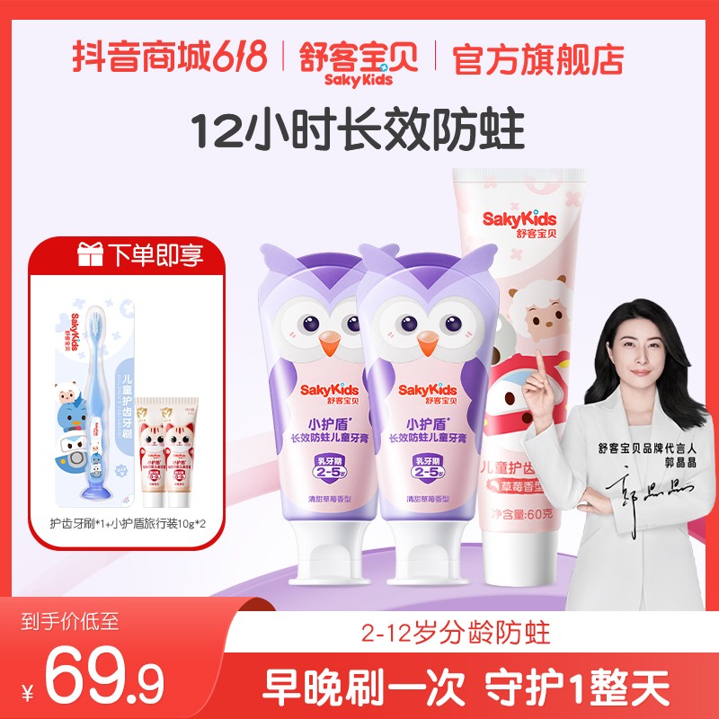 郭晶晶推薦舒客寶貝小護盾分齡防蛀護齒兒童牙膏含氟不辣口舒克