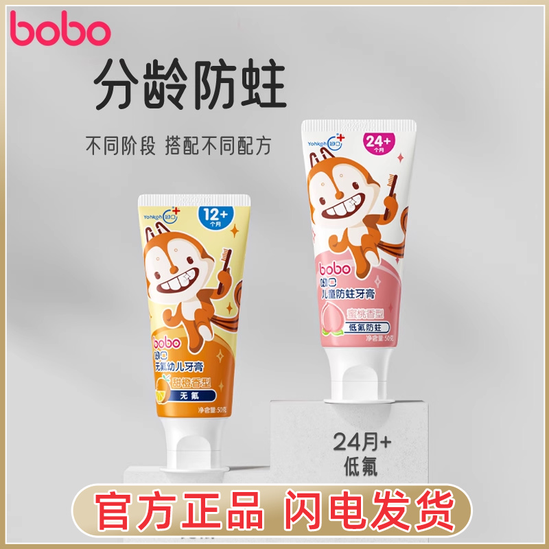 bobo兒童牙膏寶寶低氟兒童牙膏牙刷12個月以上