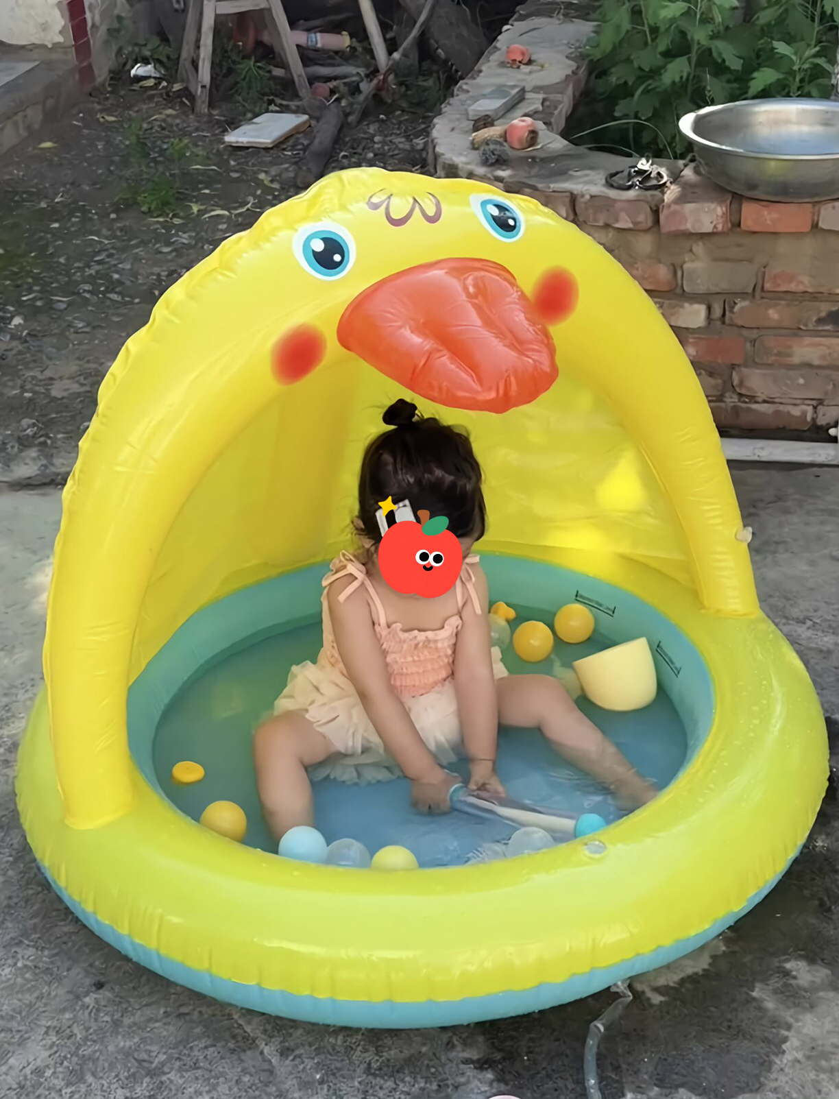 寶寶洗澡小孩加厚游泳池嬰兒戶外小黃鴨海洋球池兒童遮陽噴水池