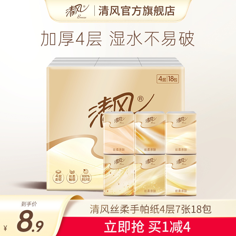 清風絲柔手帕紙4層7張18包隨身裝便攜式迷你衛生紙面巾紙小包裝