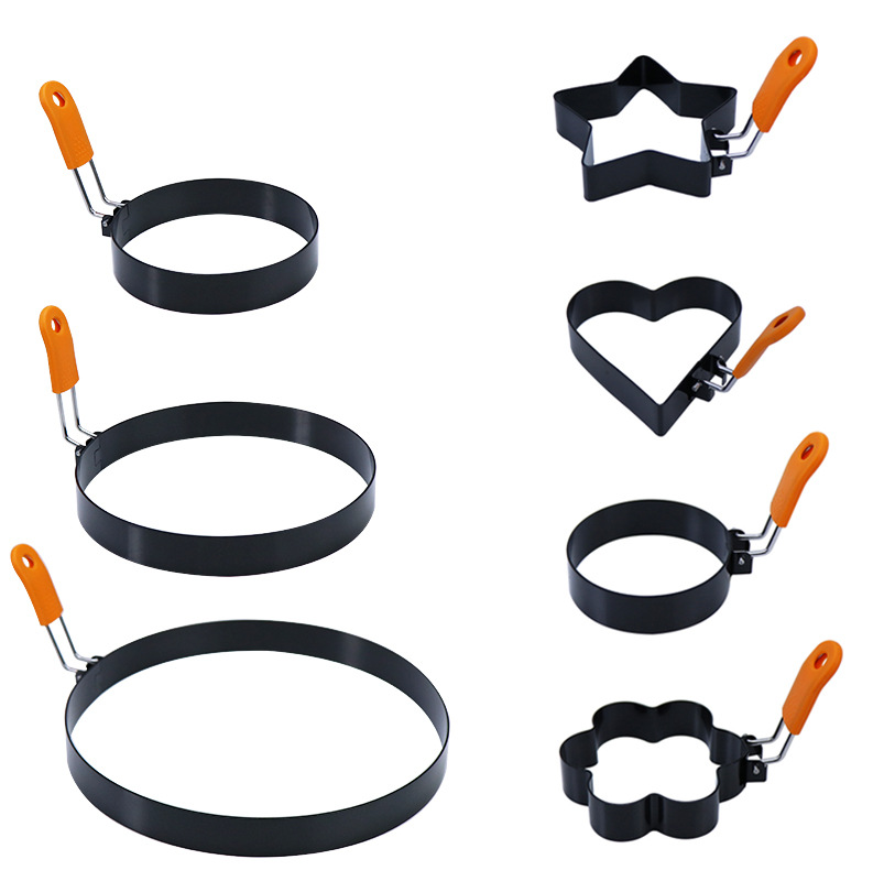 硅膠柄不銹鋼煎蛋模具 不沾煎蛋圈煎蛋器愛心花形創意煎肉餅工具