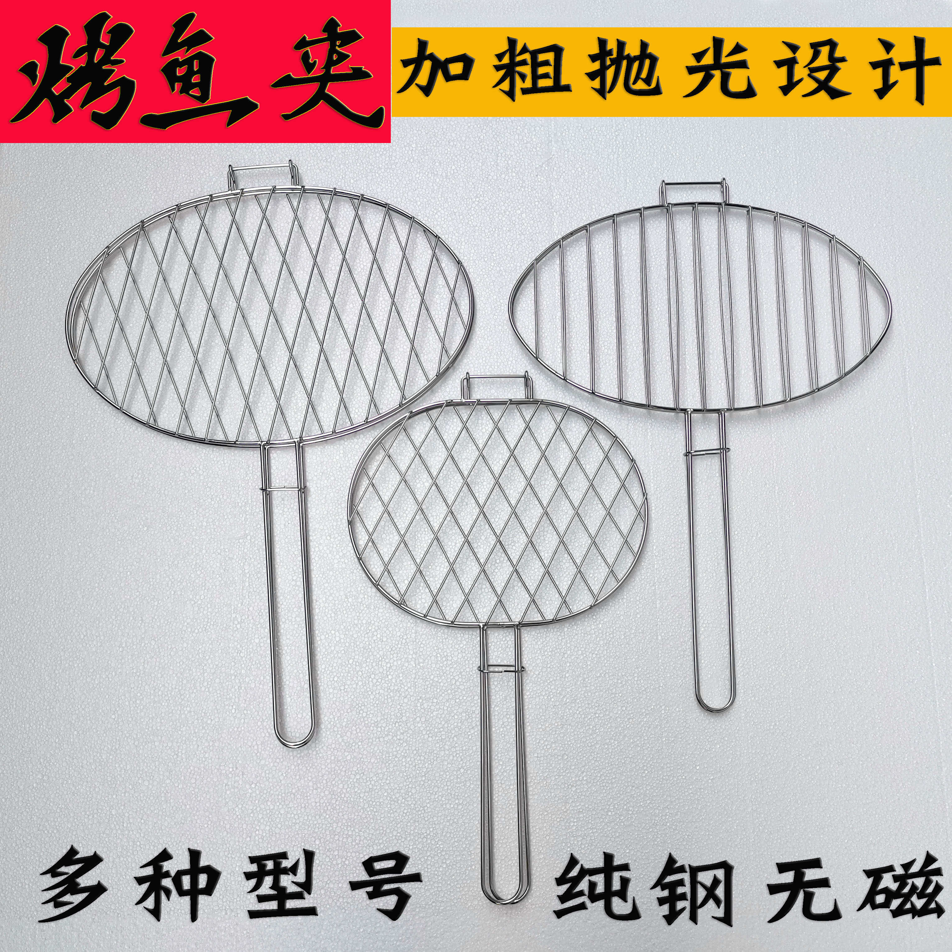 烤魚夾子不銹鋼烤魚網大號商用圓形烤魚夾板不銹鋼燒烤夾燒烤拍子