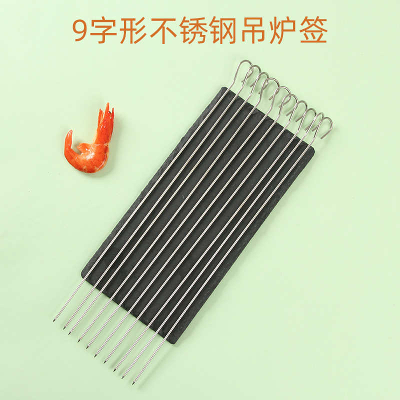 加厚九字形燒烤簽不銹鋼圓簽吊爐帶勾圓簽燒烤針鵝尾針燒烤工具