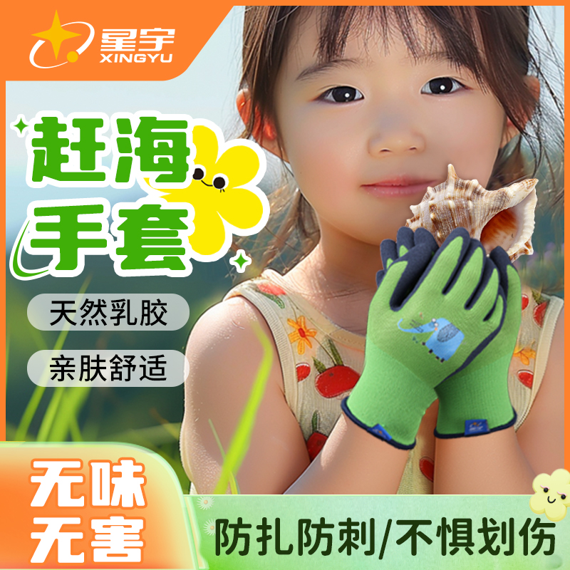 兒童手套防抓咬寶寶防護防割趕海專用抓螃蟹戶外寵物勞動采摘園藝