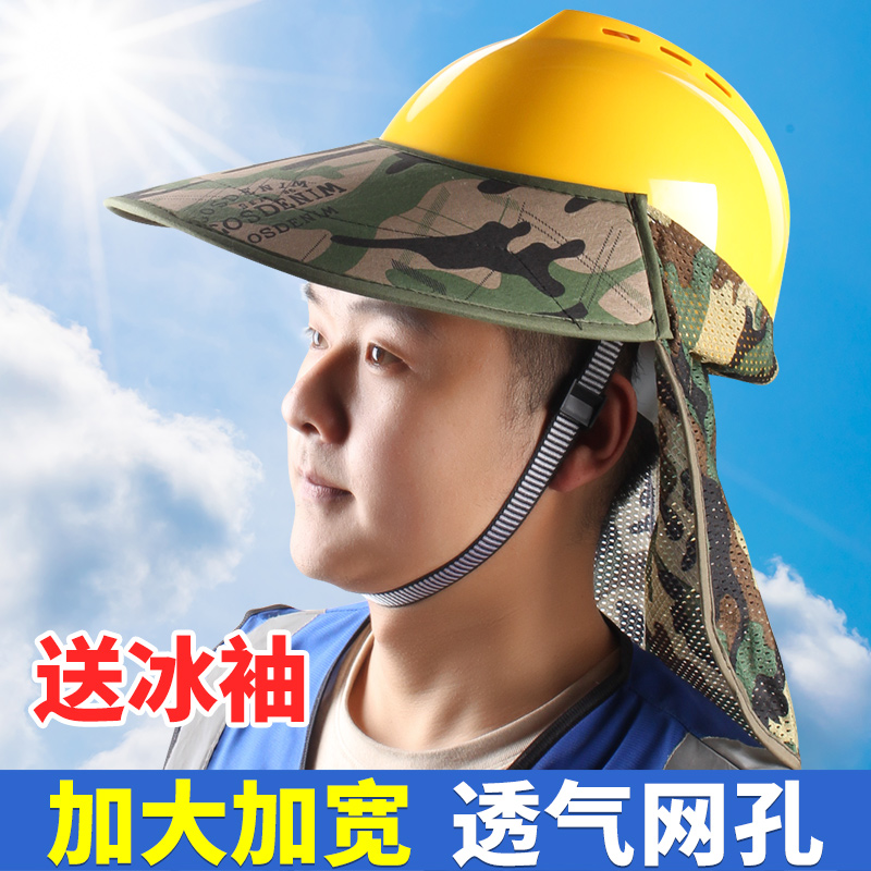 工地安全帽防曬遮陽罩透氣男遮陽帽帽檐防曬帽子頭盔男款干活面罩