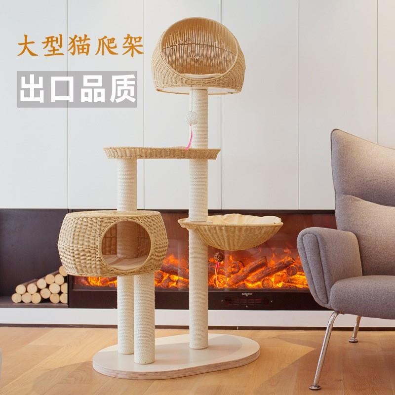 貓多爬187窩架劍柱麻貓u窩一體層實木貓樹貓窩編織大型藤編貓爬架