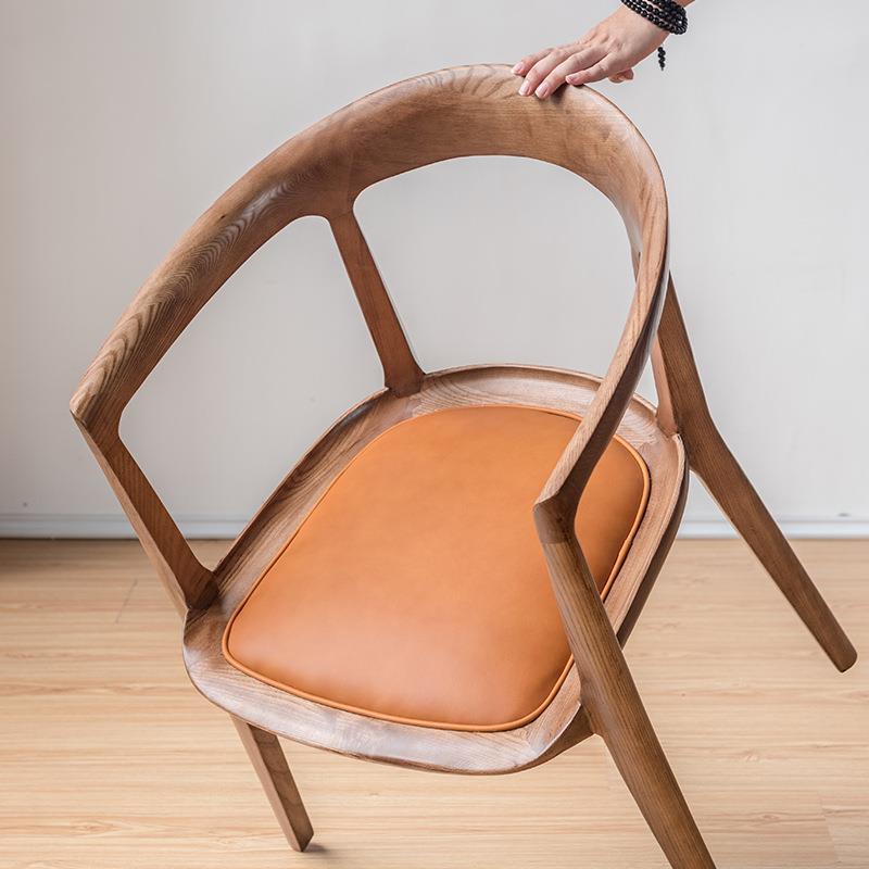 北歐實木創意意式真皮椅子原木餐廳餐椅新中式靠背家用書房書桌椅