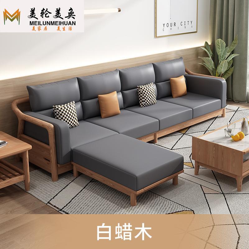 白蠟木實木沙發組合現代簡約木質軟靠帶貴妃位可拆洗客廳家用沙發