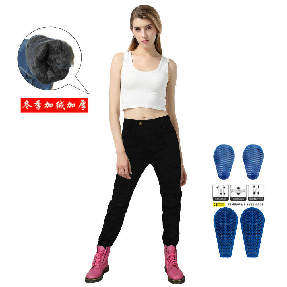 多保暖休閑褲機車 工裝絨褲女加牛仔褲袋騎行volero摩托車冬季