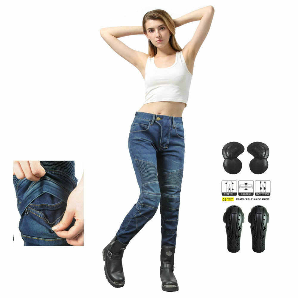 VOLERO 摩托車牛仔褲女騎士機車褲騎行褲 復古彈力 摩托車防摔褲