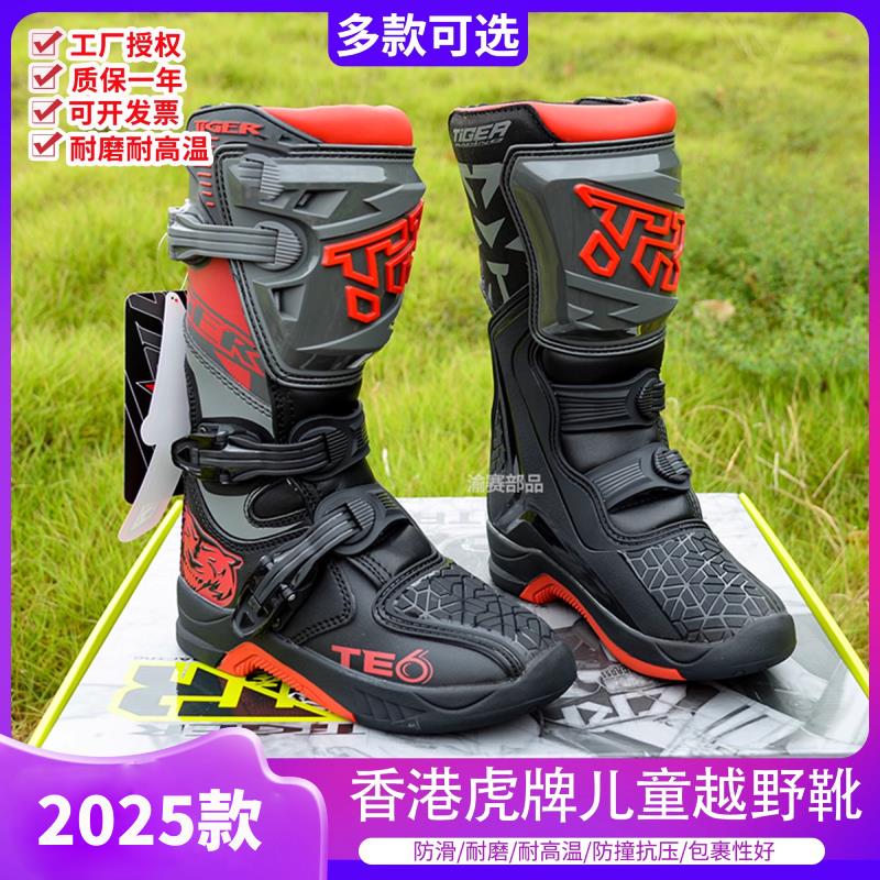 香港虎牌TR兒童越野靴子男摩托車騎行靴女士機車靴防摔護具賽車鞋
