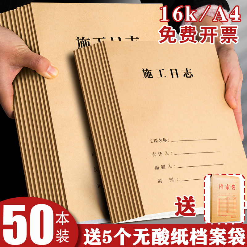 50本施工日志記錄本建筑工地a4工程日記本16k安全監理工作地進度裝修手冊新版通用加厚單雙面定制訂做印logo