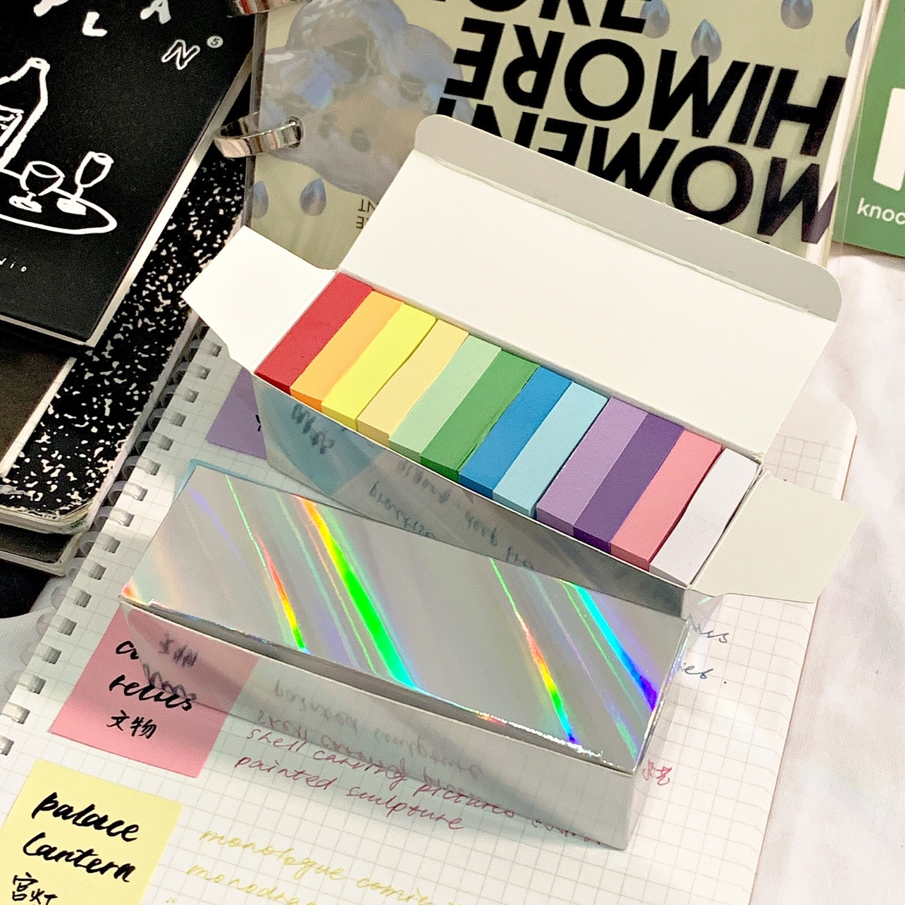 小紅書同款彩虹11色純色小方塊便利貼彩色混搭可撕有粘性索引便簽