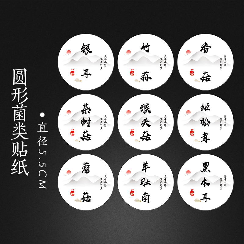 黑木耳貼標簽蘑菇香菇榛蘑貼紙羊肚菌姬松茸茶樹菇山珍不干膠C