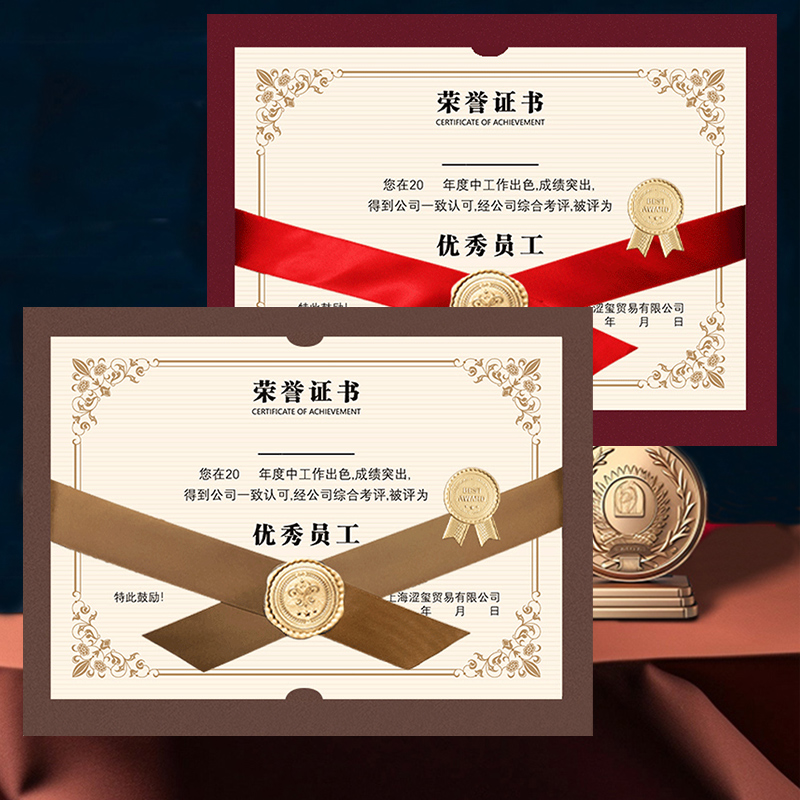 九千年榮譽證書內頁優秀員工證書 120g花邊底紋燙金字12k8k6k公司企業頒獎獎狀內芯空白配套內頁打印