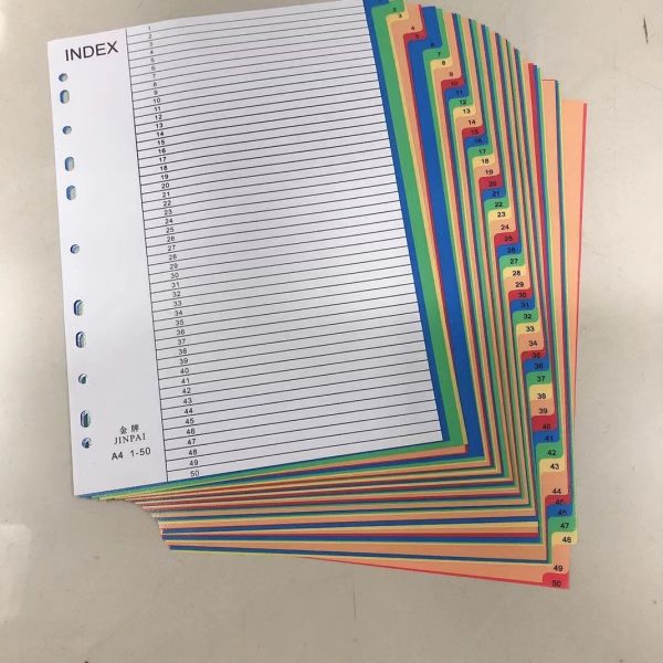 50頁塑料分類紙多頁隔類紙彩色塑料分類卡50頁索引紙11孔分頁隔層