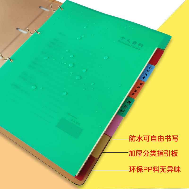 a4活頁引索紙11孔分類夾文件指引分頁紙PP塑料彩色標簽索引紙包郵